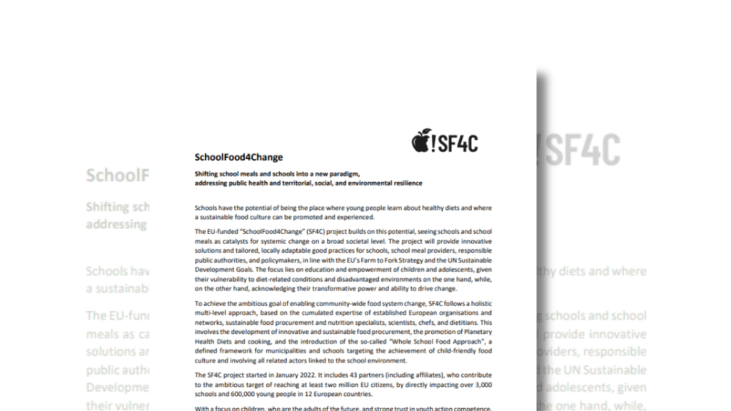 SchoolFood4Change (SF4C), a Europe wide initiative spotlighting the power of schools in transitioning to sustainable food systems, has published a set of policy recommendations emphasising…